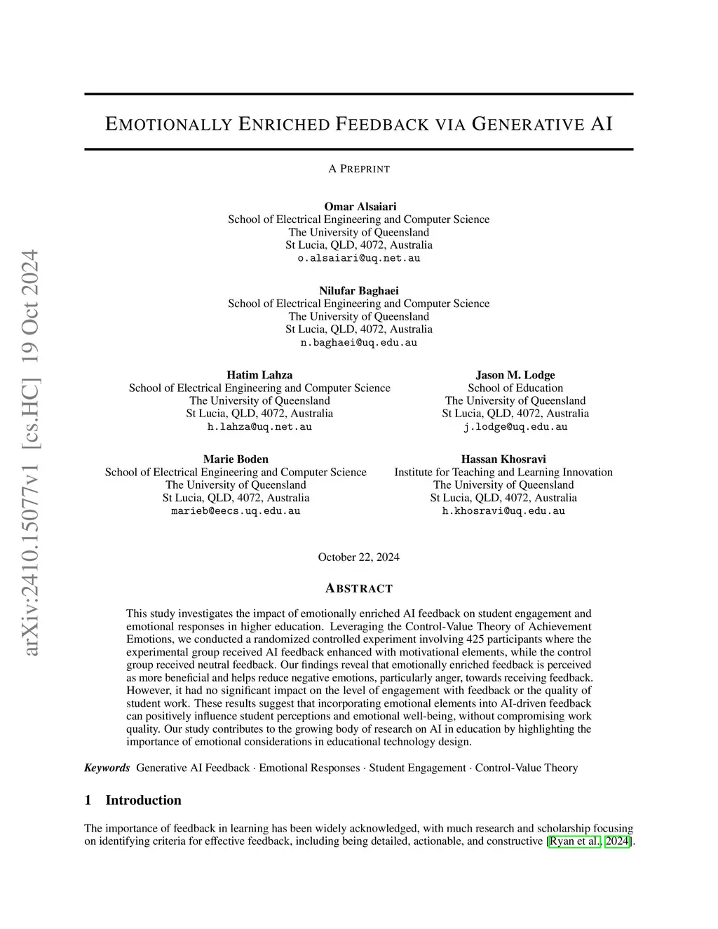 Emotionally Enriched Feedback via Generative AI