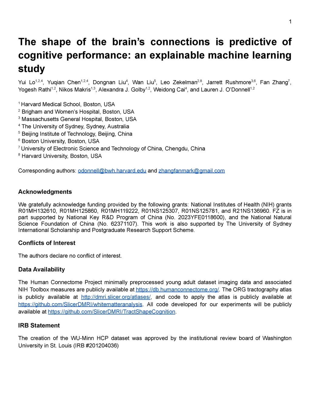 The shape of the brain's connections is predictive of cognitive performance: an explainable machine learning study