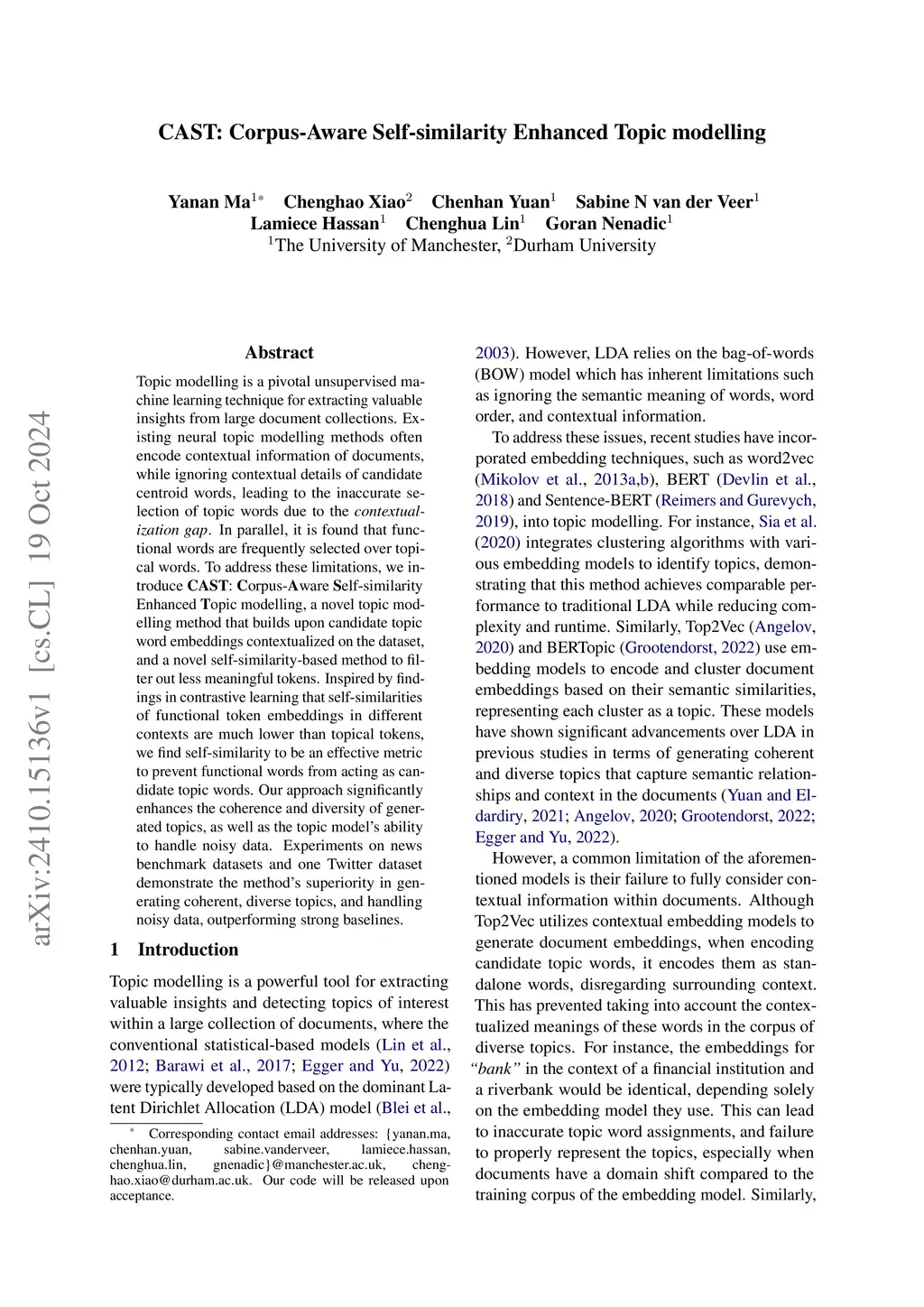CAST: Corpus-Aware Self-similarity Enhanced Topic modelling