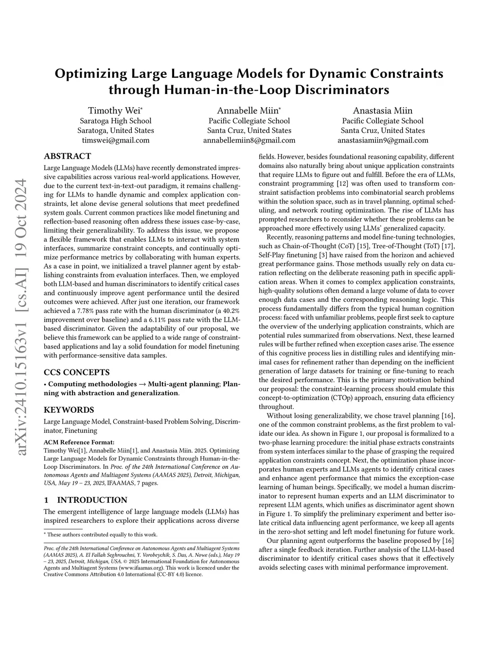 Large Language Models (LLMs) have recently demonstrated impressive capabilities across various real-world applications. However, due to the current text-in-text-out paradigm, it remains challenging for LLMs to handle dynamic and complex application constraints, let alone devise general solutions that meet predefined system goals. Current common practices like model finetuning and reflection-based reasoning often address these issues case-by-case, limiting their generalizability. To address this issue, we propose a flexible framework that enables LLMs to interact with system interfaces, summarize constraint concepts, and continually optimize performance metrics by collaborating with human experts. As a case in point, we initialized a travel planner agent by establishing constraints from evaluation interfaces. Then, we employed both LLM-based and human discriminators to identify critical cases and continuously improve agent performance until the desired outcomes were achieved. After just one iteration, our framework achieved a pass rate with the human discriminator (a improvement over baseline) and a pass rate with the LLM-based discriminator. Given the adaptability of our proposal, we believe this framework can be applied to a wide range of constraint-based applications and lay a solid foundation for model finetuning with performance-sensitive data samples.