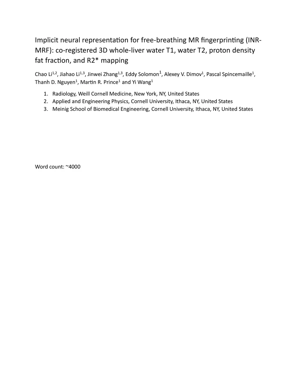 (INR-MRF): co-registered 3D whole-liver water T1, water T2, proton density