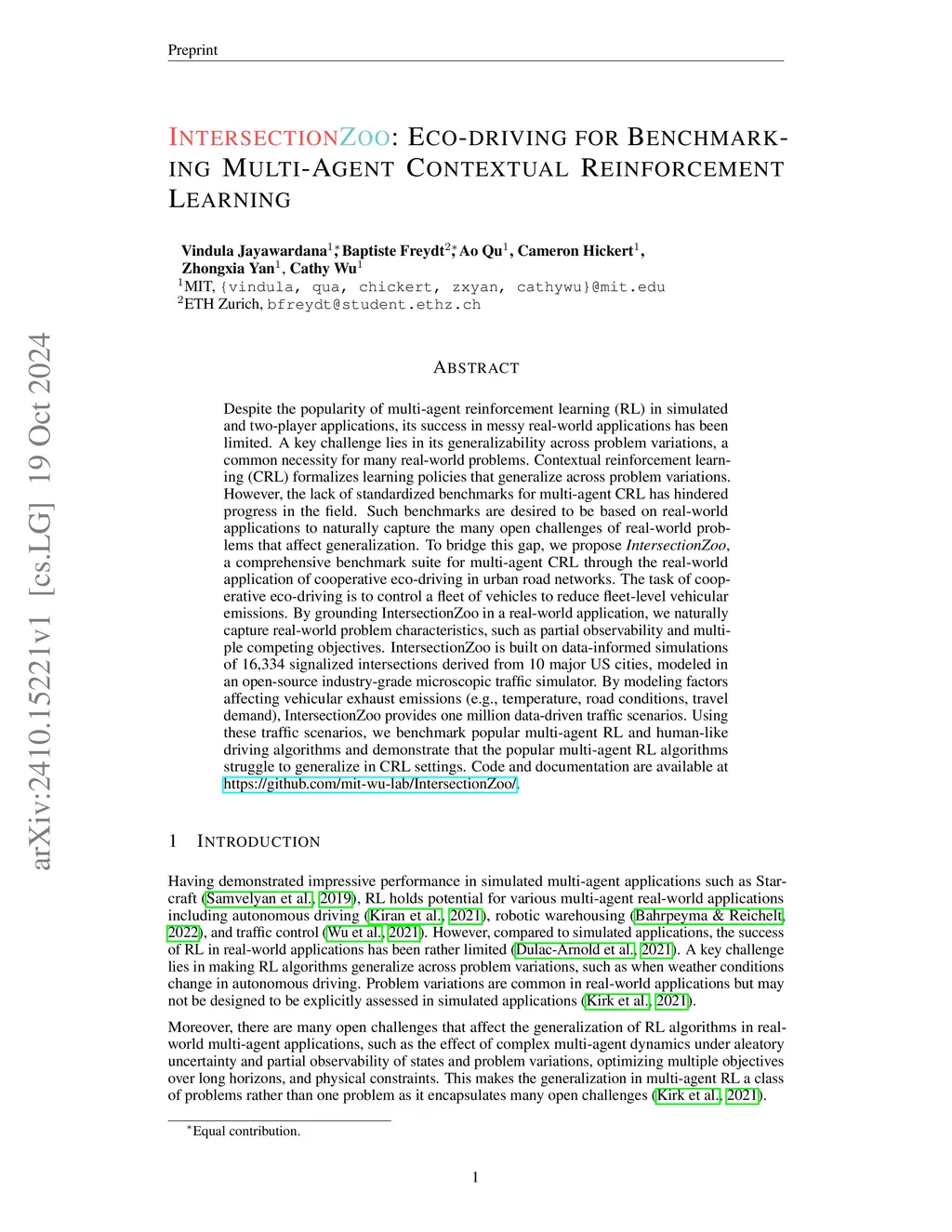 IntersectionZoo: Eco-driving for Benchmarking Multi-Agent Contextual