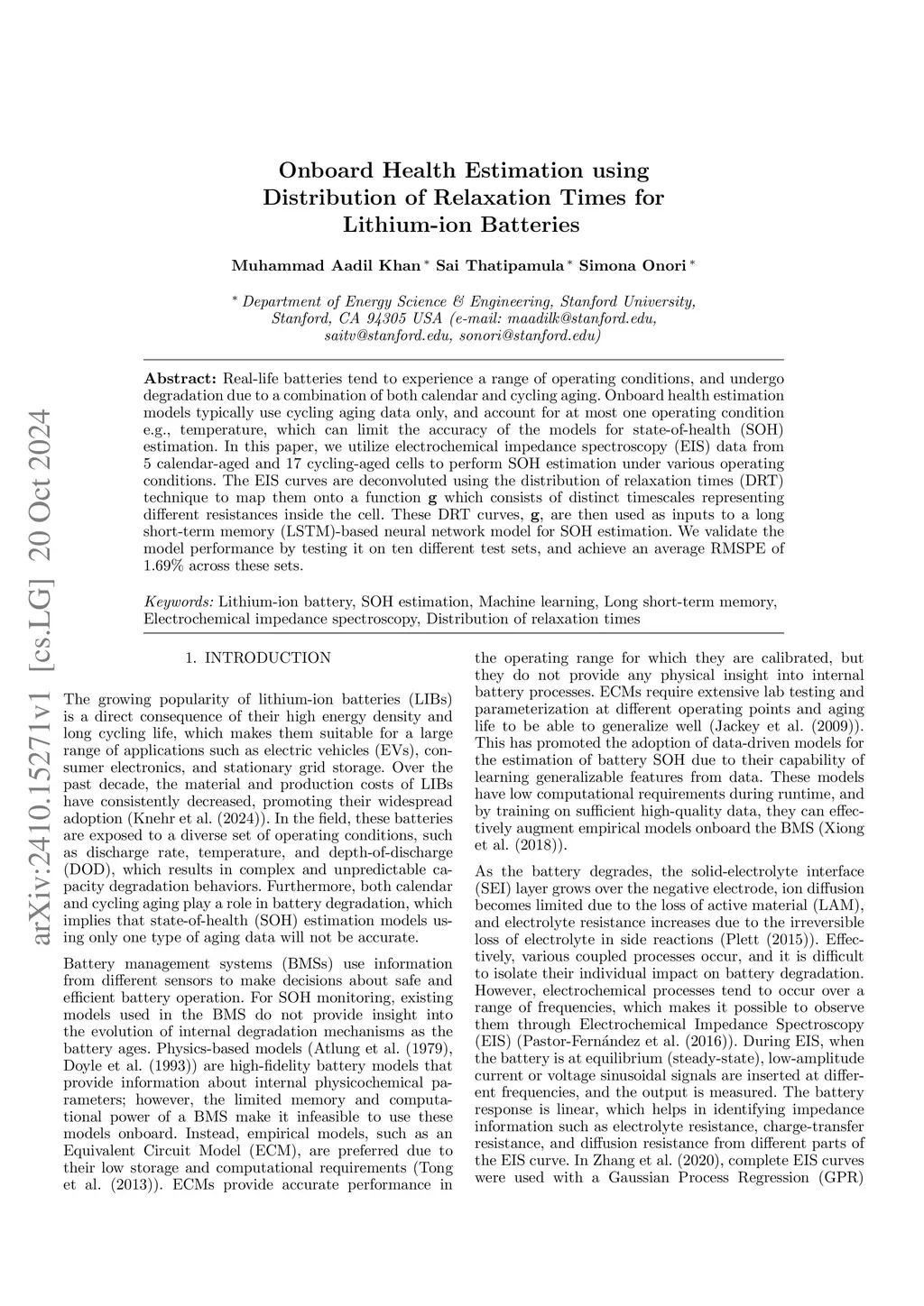 Onboard Health Estimation using Distribution of Relaxation Times for