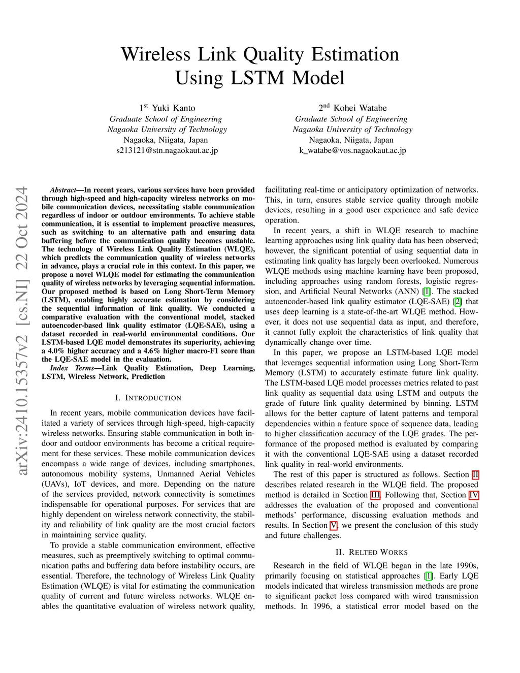 Wireless Link Quality Estimation Using LSTM Model