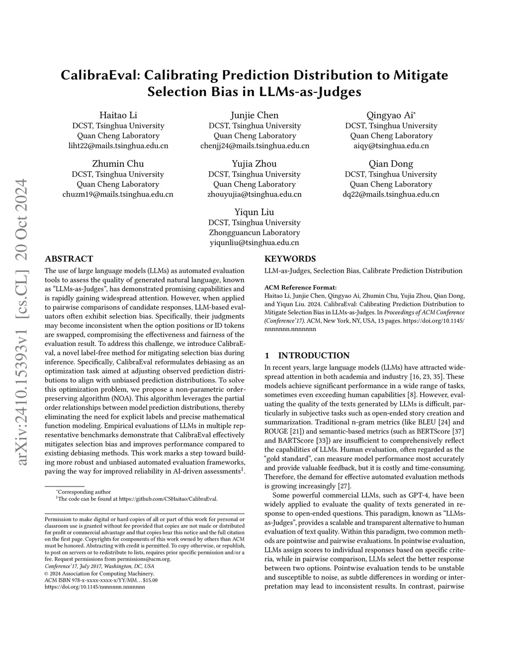 CalibraEval: Calibrating Prediction Distribution to Mitigate Selection