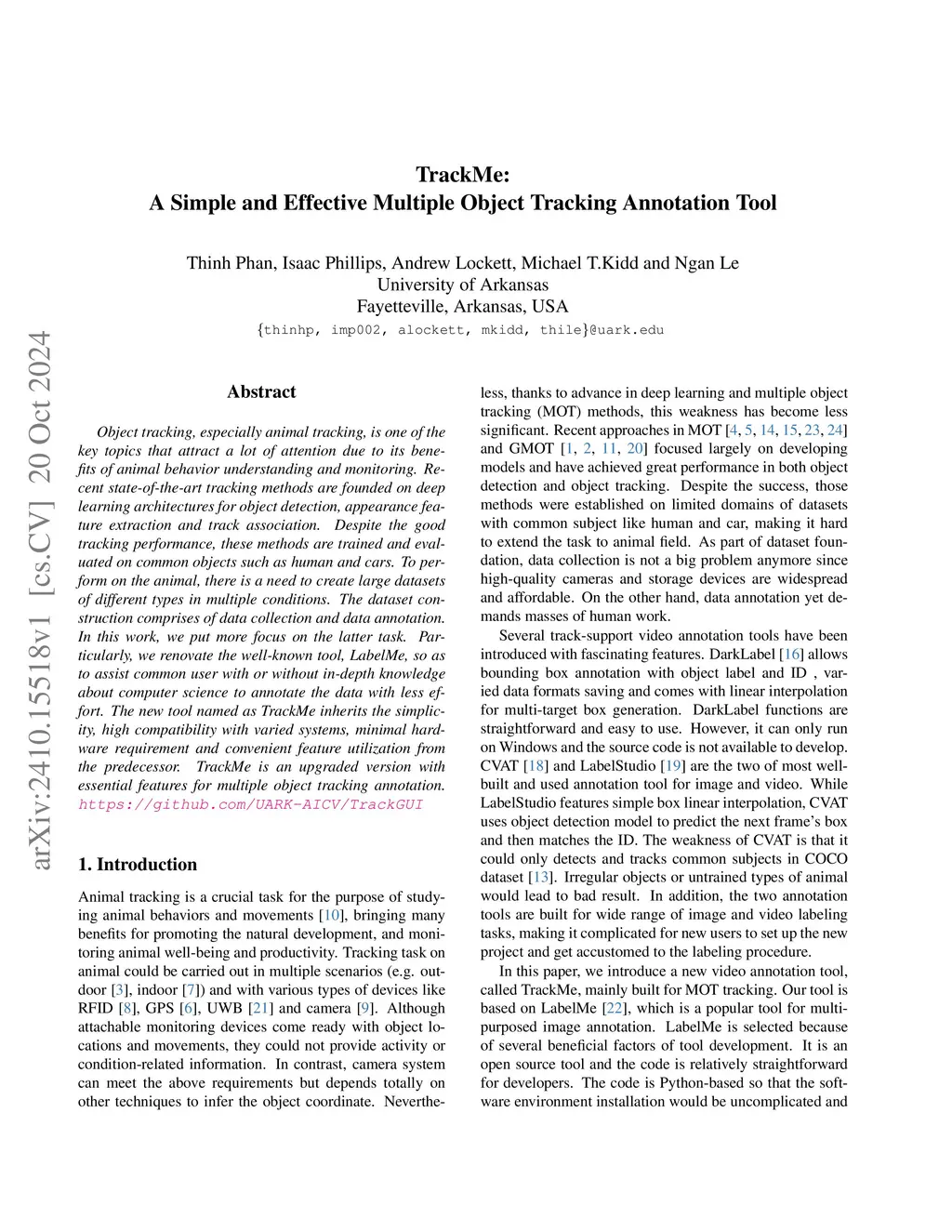 Object tracking, especially animal tracking, is one of the key topics that attract a lot of attention due to its benefits of animal behavior understanding and monitoring. Recent state-of-the-art tracking methods are founded on deep learning architectures for object detection, appearance feature extraction and track association. Despite the good tracking performance, these methods are trained and evaluated on common objects such as human and cars. To perform on the animal, there is a need to create large datasets of different types in multiple conditions. The dataset construction comprises of data collection and data annotation. In this work, we put more focus on the latter task. Particularly, we renovate the well-known tool, LabelMe, so as to assist common user with or without in-depth knowledge about computer science to annotate the data with less effort. The new tool named as TrackMe inherits the simplicity, high compatibility with varied systems, minimal hardware requirement and convenient feature utilization from the predecessor. TrackMe is an upgraded version with essential features for multiple object tracking annotation.