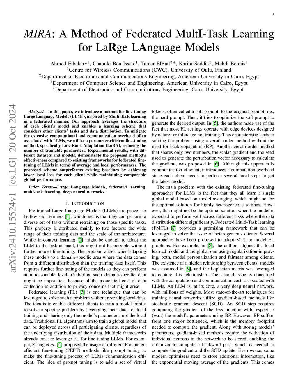 MIRA: A Method of Federated MultI-Task Learning for LaRge LAnguage
