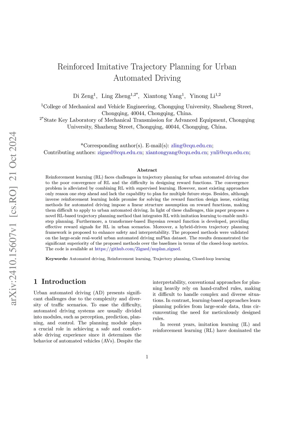 Reinforced Imitative Trajectory Planning for Urban Automated Driving