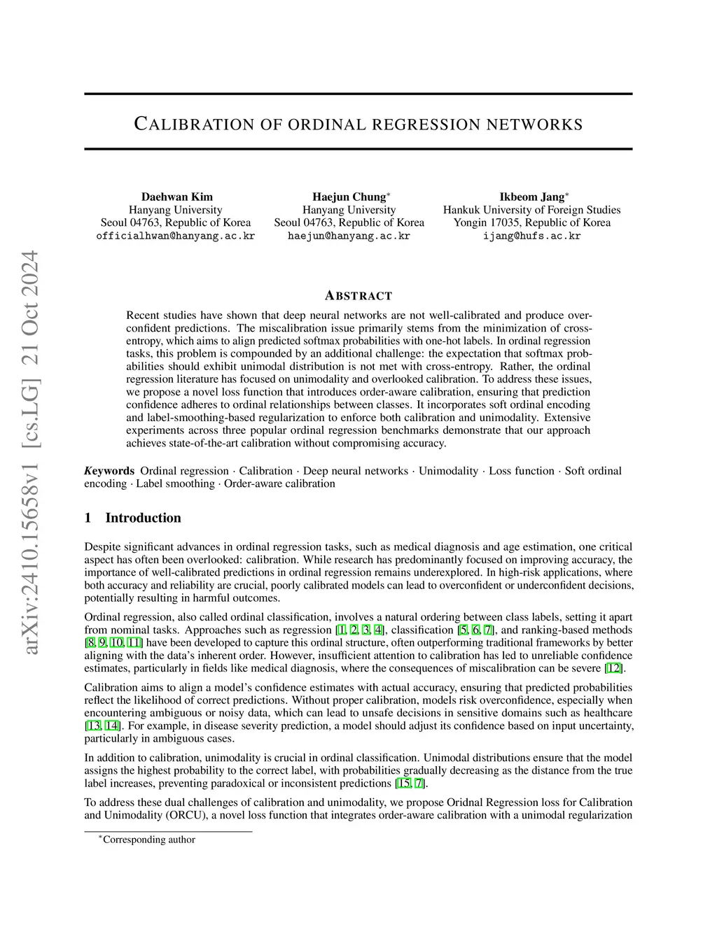 Recent studies have shown that deep neural networks are not well-calibrated and often produce over-confident predictions. The miscalibration issue primarily stems from using cross-entropy in classifications, which aims to align predicted softmax probabilities with one-hot labels. In ordinal regression tasks, this problem is compounded by an additional challenge: the expectation that softmax probabilities should exhibit unimodal distribution is not met with cross-entropy. The ordinal regression literature has focused on learning orders and overlooked calibration. To address both issues, we propose a novel loss function that introduces ordinal-aware calibration, ensuring that prediction confidence adheres to ordinal relationships between classes. It incorporates soft ordinal encoding and ordinal-aware regularization to enforce both calibration and unimodality. Extensive experiments across four popular ordinal regression benchmarks demonstrate that our approach achieves state-of-the-art calibration without compromising classification accuracy.