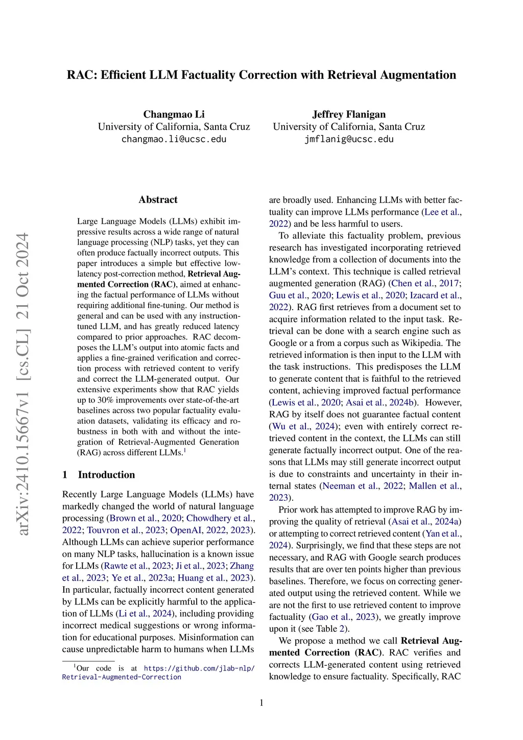 RAC: Efficient LLM Factuality Correction with Retrieval Augmentation