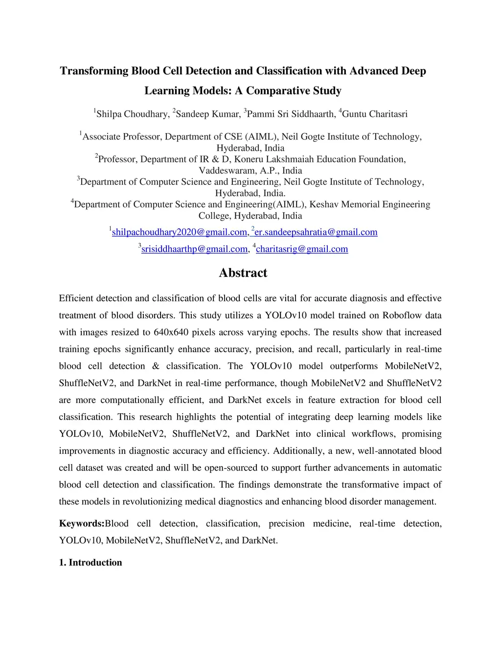 Efficient detection and classification of blood cells are vital for accurate diagnosis and effective treatment of blood disorders. This study utilizes a YOLOv10 model trained on Roboflow data with images resized to 640x640 pixels across varying epochs. The results show that increased training epochs significantly enhance accuracy, precision, and recall, particularly in real-time blood cell detection & classification. The YOLOv10 model outperforms MobileNetV2, ShuffleNetV2, and DarkNet in real-time performance, though MobileNetV2 and ShuffleNetV2 are more computationally efficient, and DarkNet excels in feature extraction for blood cell classification. This research highlights the potential of integrating deep learning models like YOLOv10, MobileNetV2, ShuffleNetV2, and DarkNet into clinical workflows, promising improvements in diagnostic accuracy and efficiency. Additionally, a new, well-annotated blood cell dataset was created and will be open-sourced to support further advancements in automatic blood cell detection and classification. The findings demonstrate the transformative impact of these models in revolutionizing medical diagnostics and enhancing blood disorder management