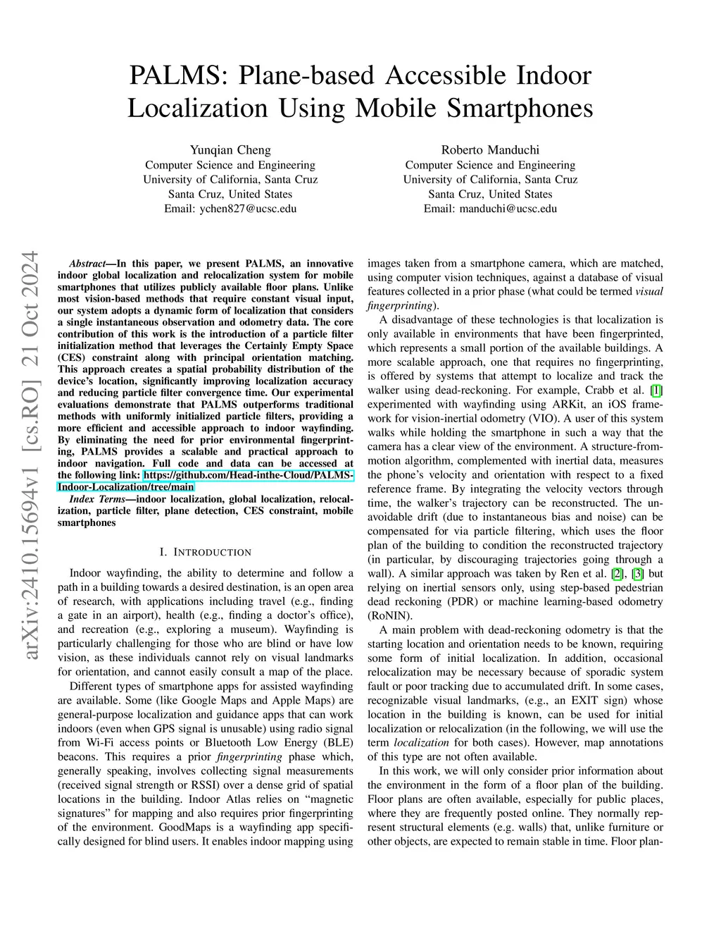 PALMS: Plane-based Accessible Indoor Localization Using Mobile