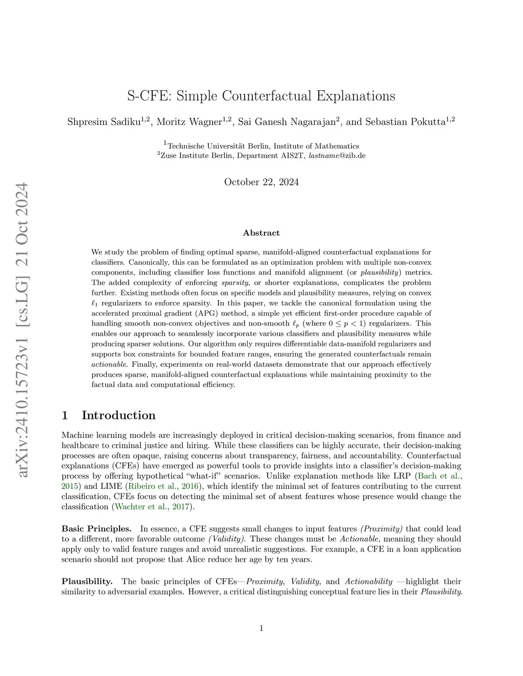 S-CFE: Simple Counterfactual Explanations