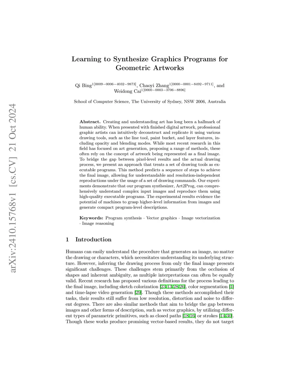 Learning to Synthesize Graphics Programs for Geometric Artworks