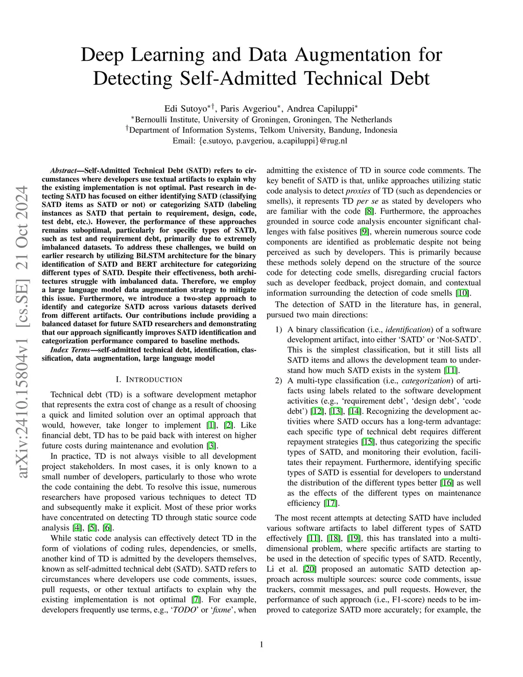 Deep Learning and Data Augmentation for Detecting Self-Admitted