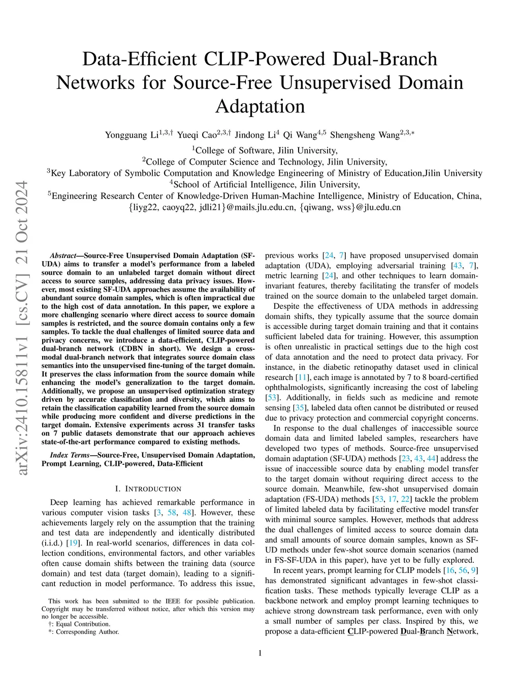 Data-Efficient CLIP-Powered Dual-Branch Networks for Source-Free