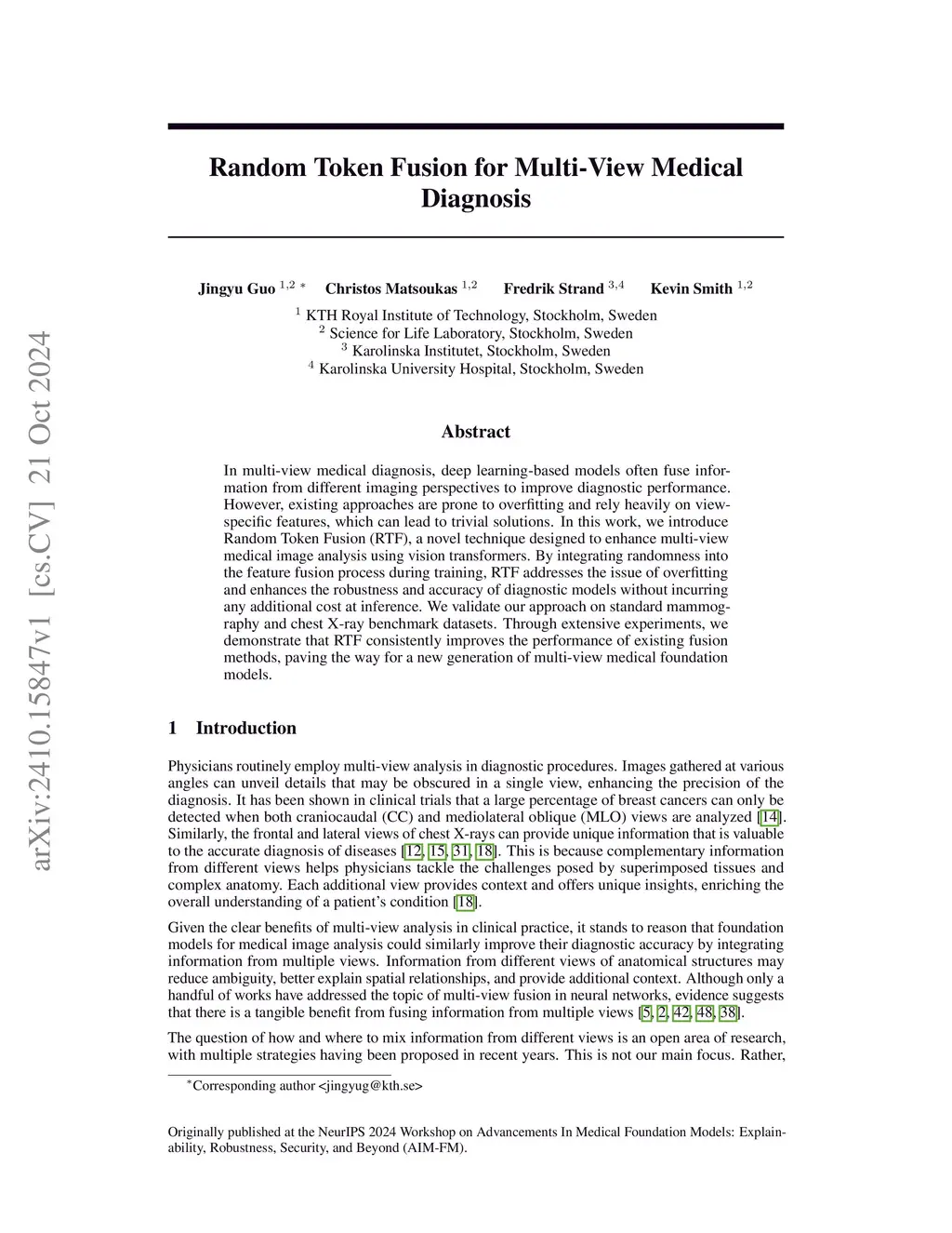 Random Token Fusion for Multi-View Medical Diagnosis
