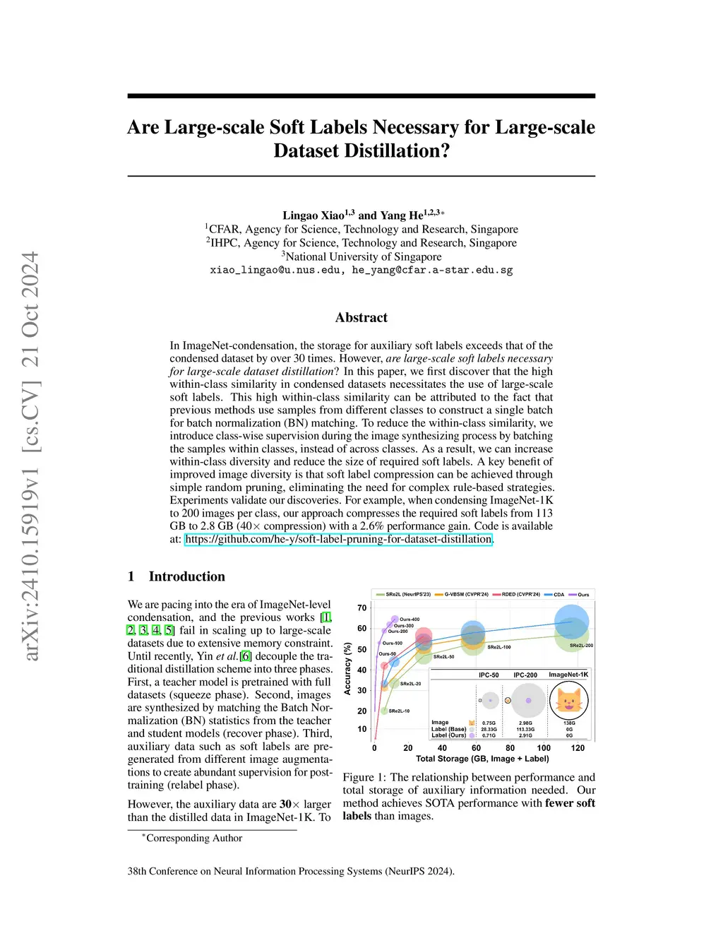 In ImageNet-condensation, the storage for auxiliary soft labels exceeds that of the condensed dataset by over 30 times. However, are large-scale soft labels necessary for large-scale dataset distillation? In this paper, we first discover that the high within-class similarity in condensed datasets necessitates the use of large-scale soft labels. This high within-class similarity can be attributed to the fact that previous methods use samples from different classes to construct a single batch for batch normalization (BN) matching. To reduce the within-class similarity, we introduce class-wise supervision during the image synthesizing process by batching the samples within classes, instead of across classes. As a result, we can increase within-class diversity and reduce the size of required soft labels. A key benefit of improved image diversity is that soft label compression can be achieved through simple random pruning, eliminating the need for complex rule-based strategies. Experiments validate our discoveries. For example, when condensing ImageNet-1K to 200 images per class, our approach compresses the required soft labels from 113 GB to 2.8 GB (40x compression) with a 2.6% performance gain. Code is available at: https://github.com/he-y/soft-label-pruning-for-dataset-distillation
