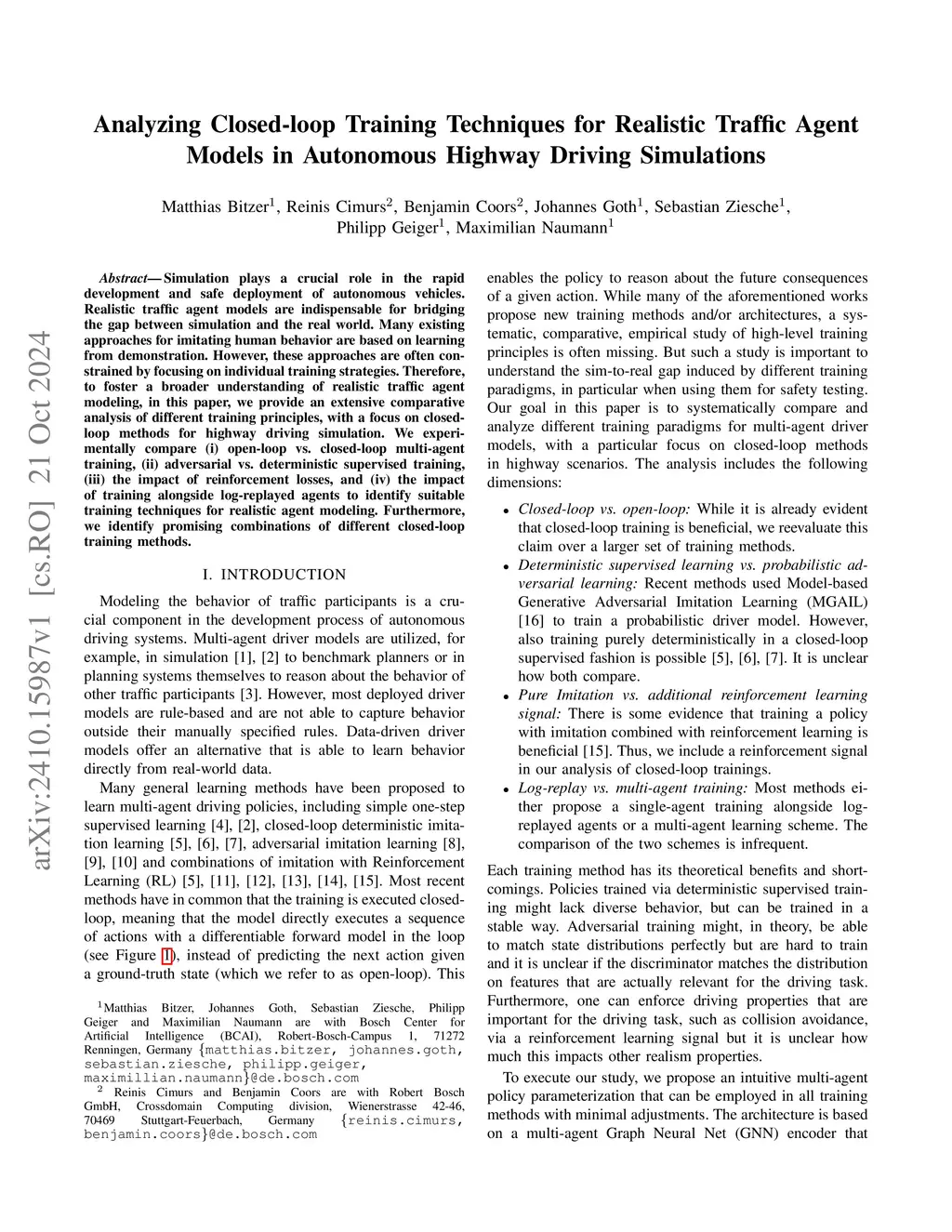 Simulation plays a crucial role in the rapid development and safe deployment of autonomous vehicles. Realistic traffic agent models are indispensable for bridging the gap between simulation and the real world. Many existing approaches for imitating human behavior are based on learning from demonstration. However, these approaches are often constrained by focusing on individual training strategies. Therefore, to foster a broader understanding of realistic traffic agent modeling, in this paper, we provide an extensive comparative analysis of different training principles, with a focus on closed-loop methods for highway driving simulation. We experimentally compare (i) open-loop vs. closed-loop multi-agent training, (ii) adversarial vs. deterministic supervised training, (iii) the impact of reinforcement losses, and (iv) the impact of training alongside log-replayed agents to identify suitable training techniques for realistic agent modeling. Furthermore, we identify promising combinations of different closed-loop training methods.