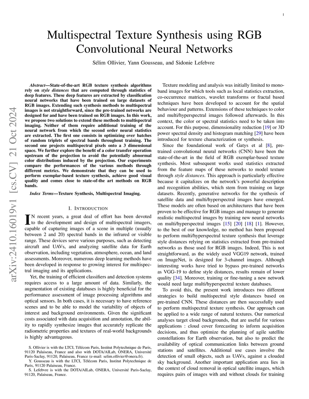 Multispectral Texture Synthesis using RGB Convolutional Neural Networks