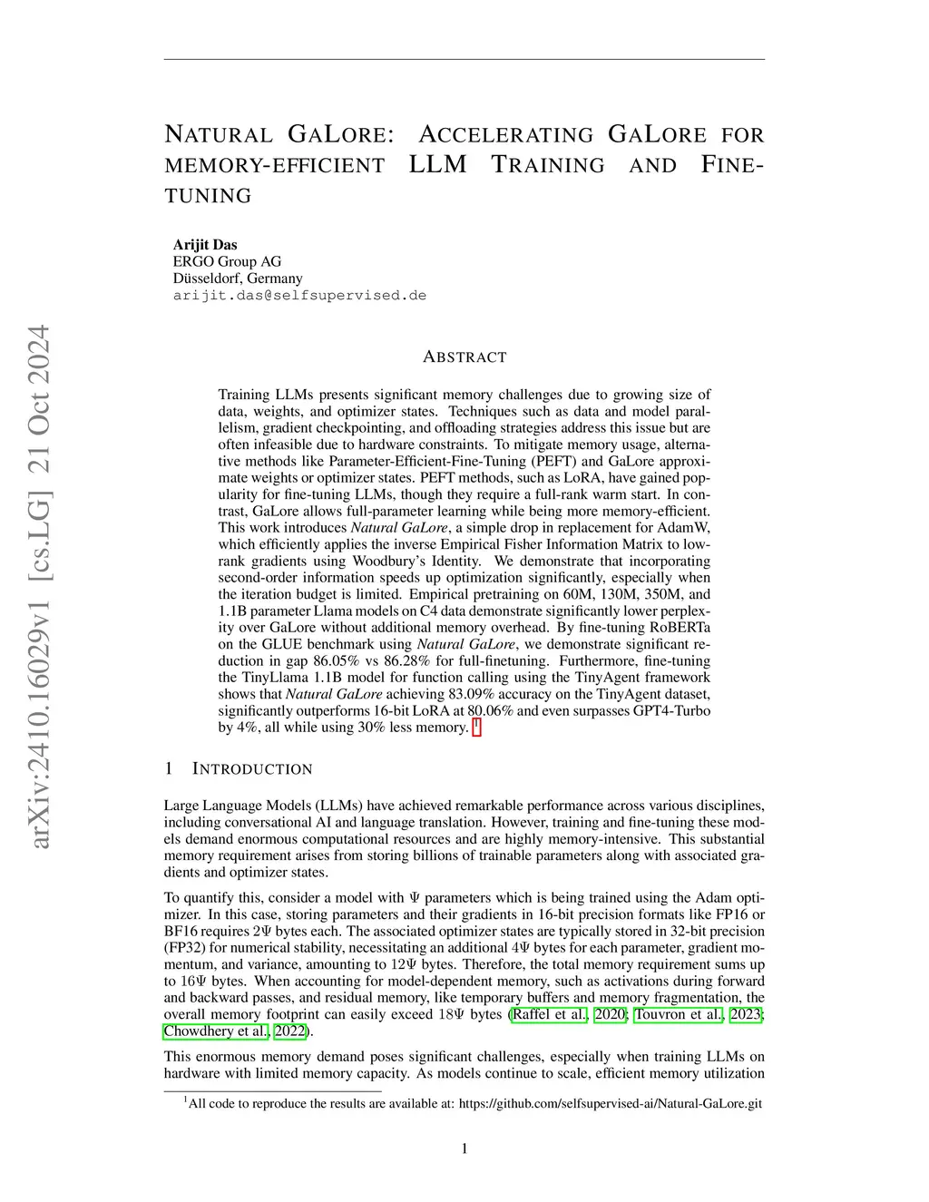 Natural GaLore: Accelerating GaLore for memory-efficient LLM Training