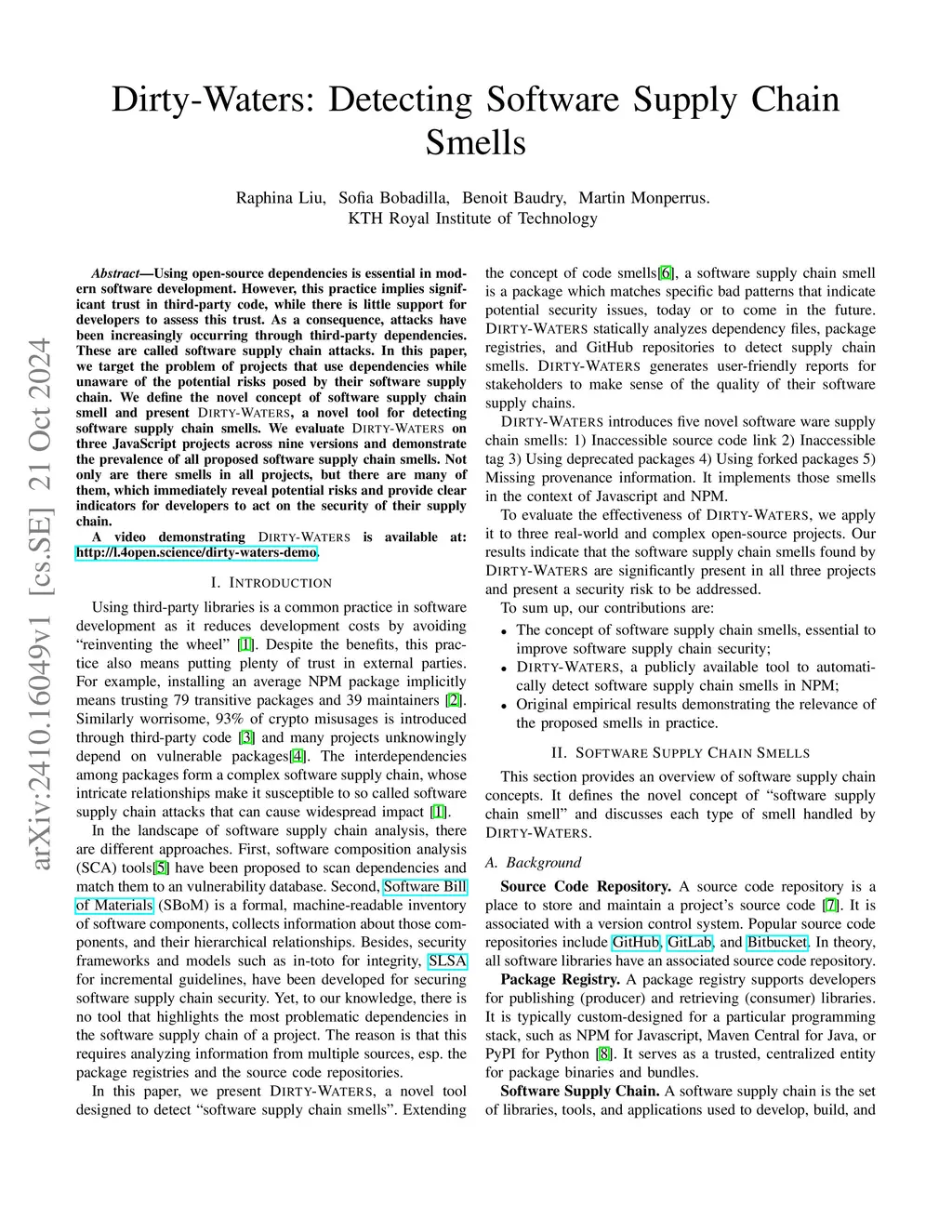 Dirty-Waters: Detecting Software Supply Chain Smells