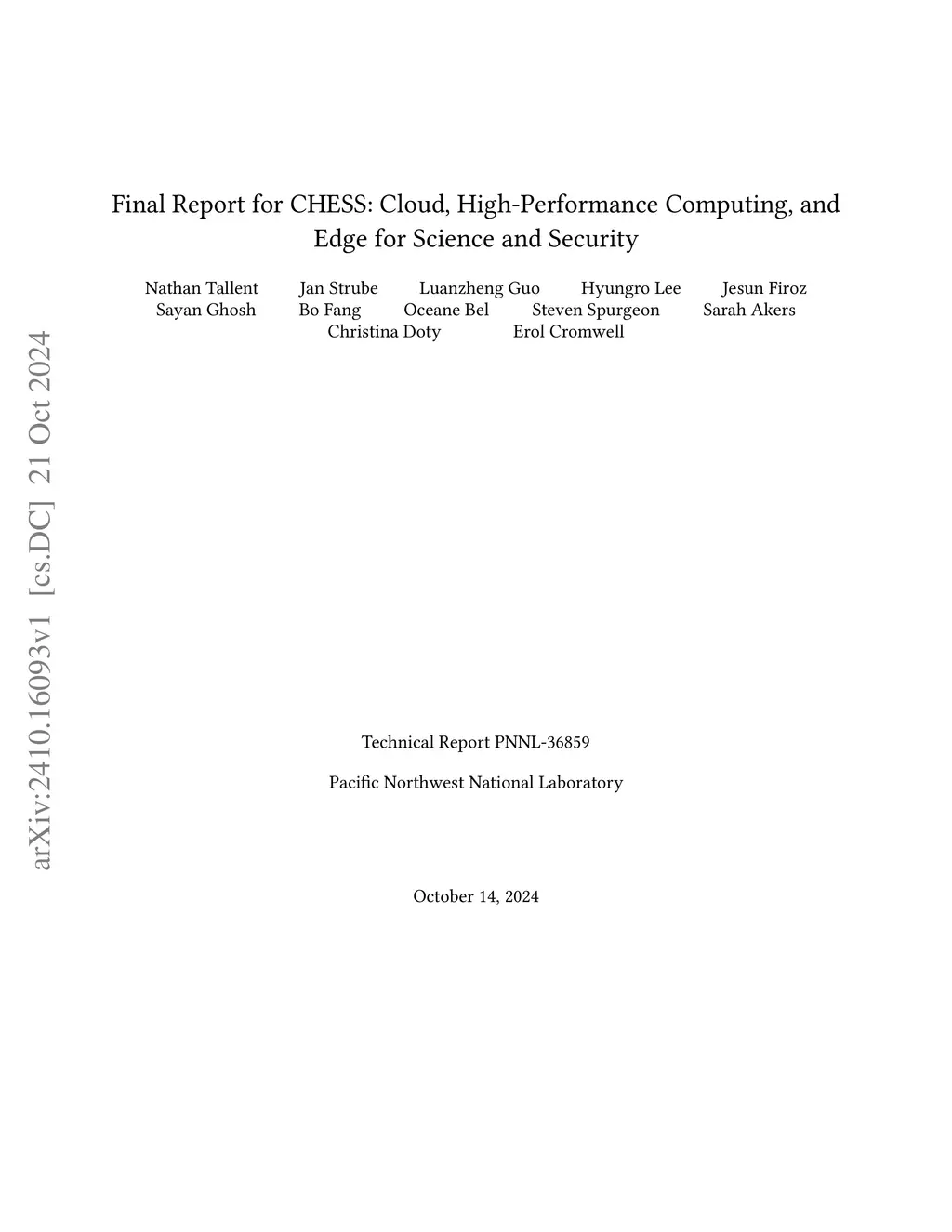 Final Report for CHESS: Cloud, High-Performance Computing, and Edge for