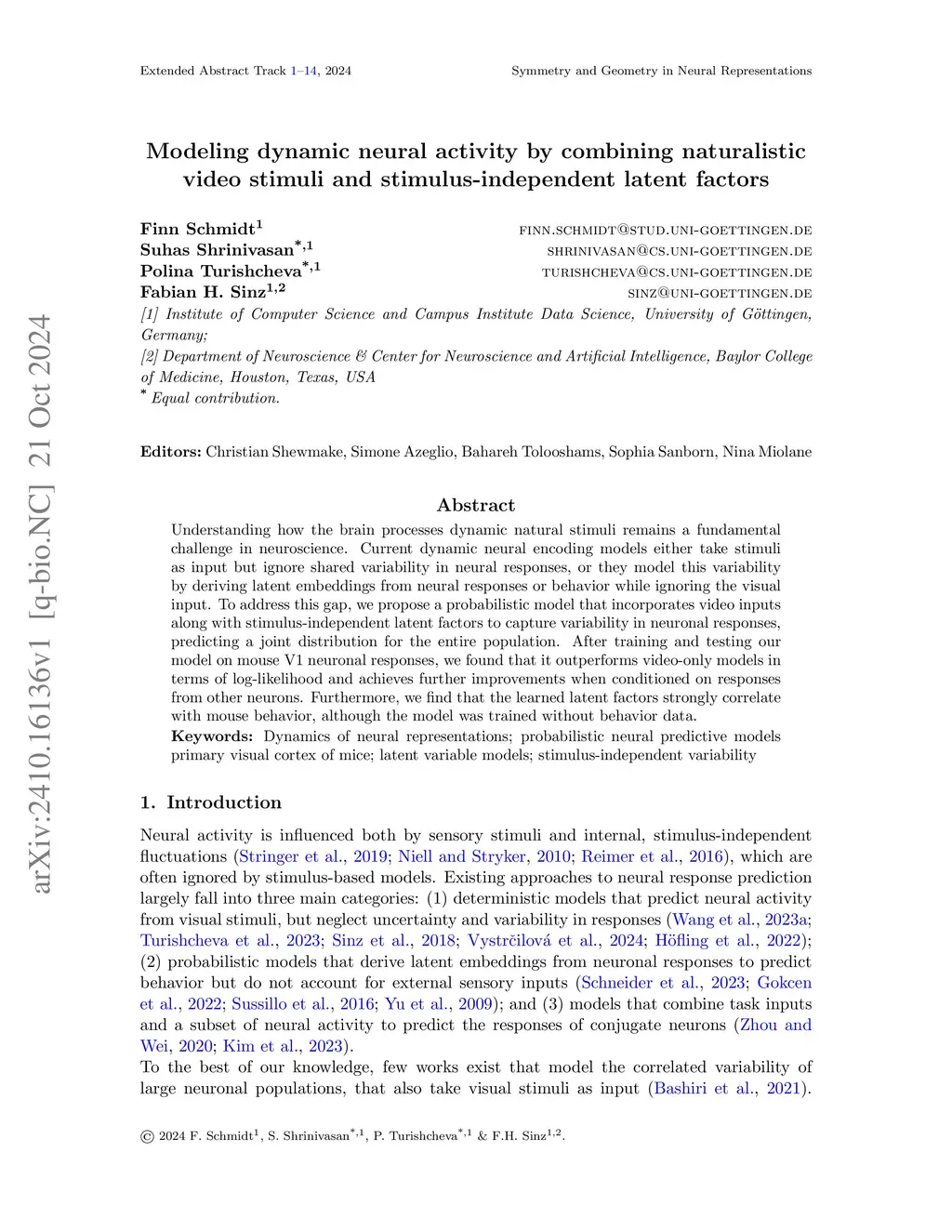 Modeling Dynamic Neural Activity by combining Naturalistic Video Stimuli and Stimulus-independent Latent Factors