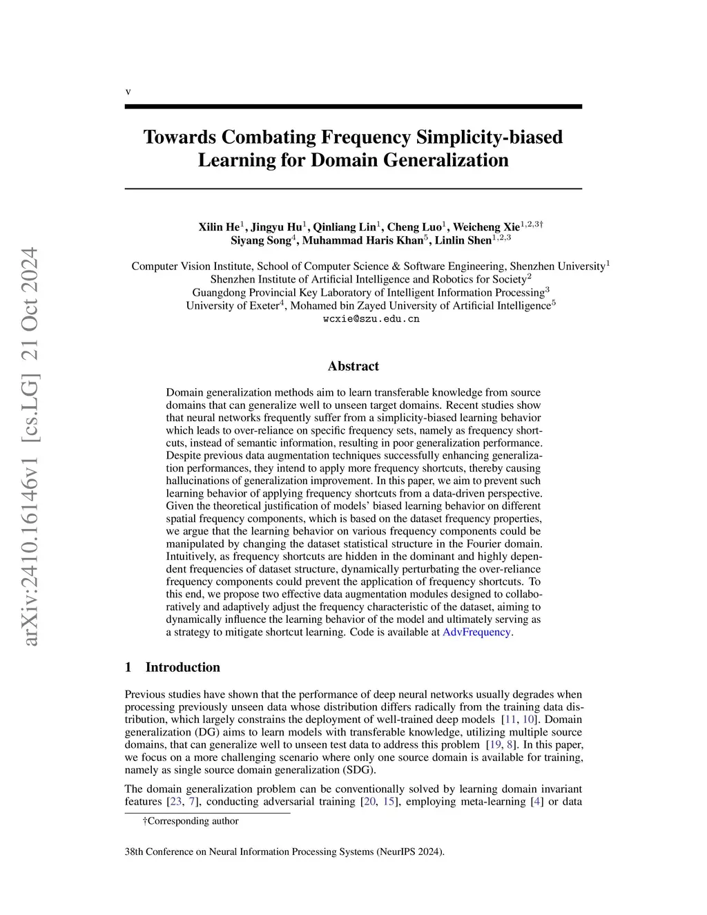 Towards Combating Frequency Simplicity-biased Learning for Domain