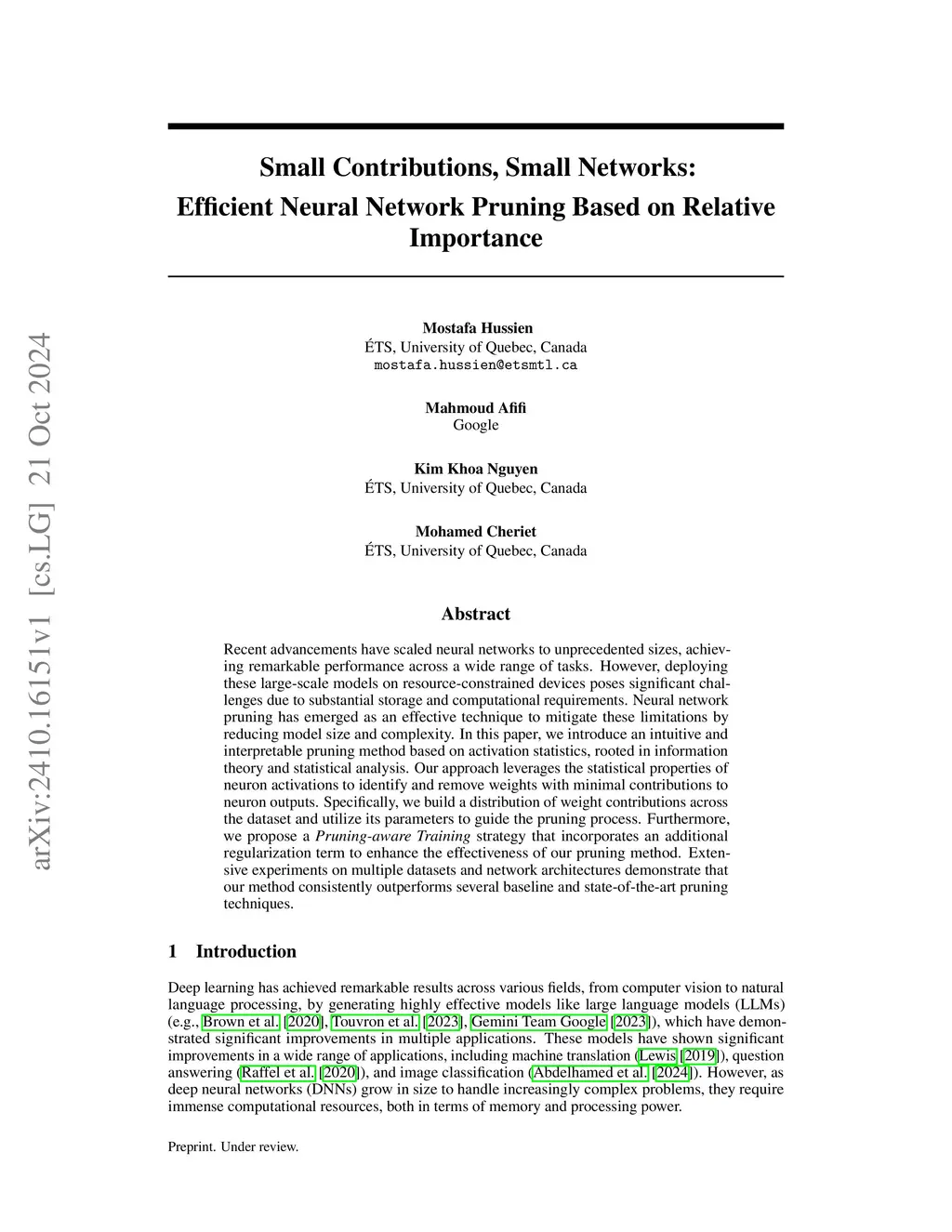 Small Contributions, Small Networks: Efficient Neural Network Pruning