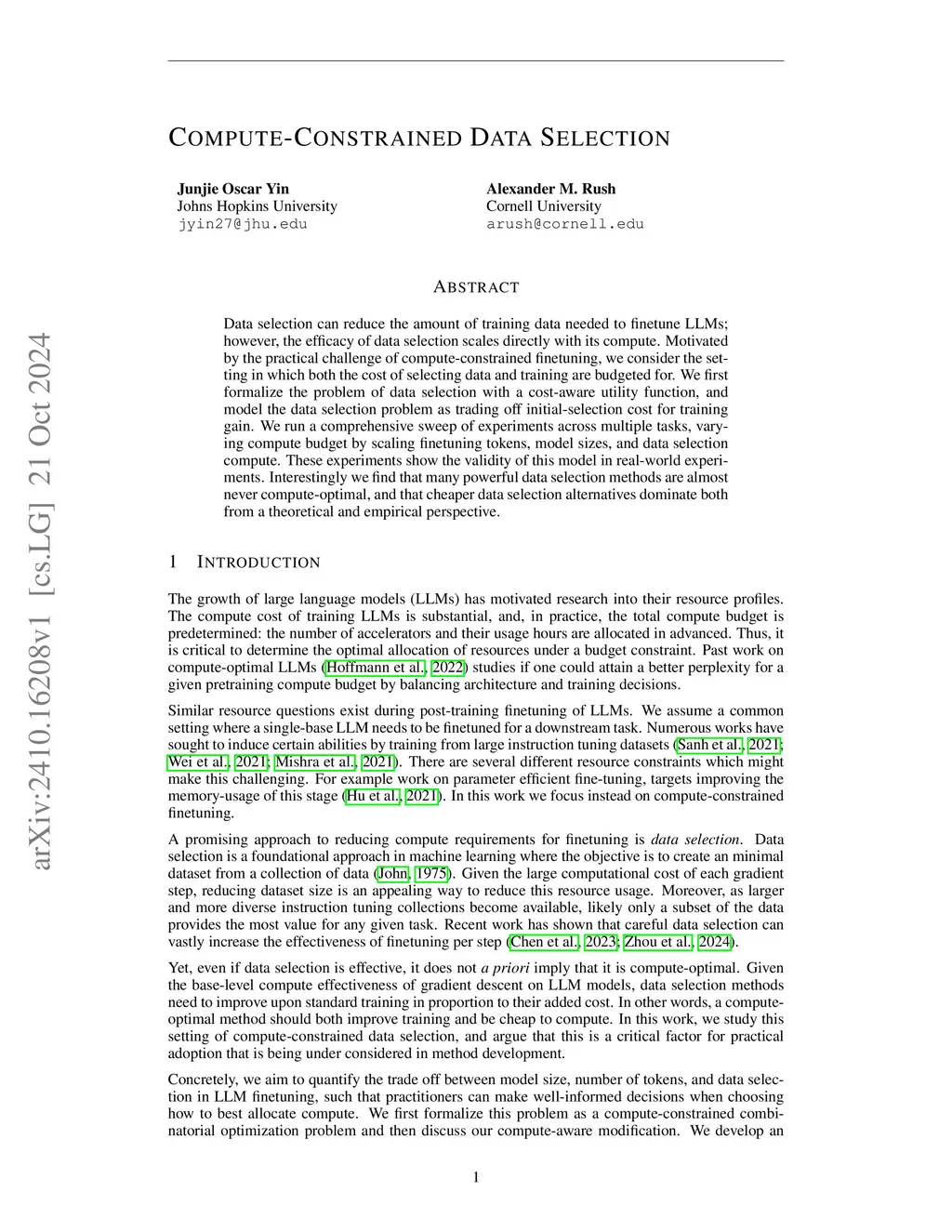 Compute-Constrained Data Selection