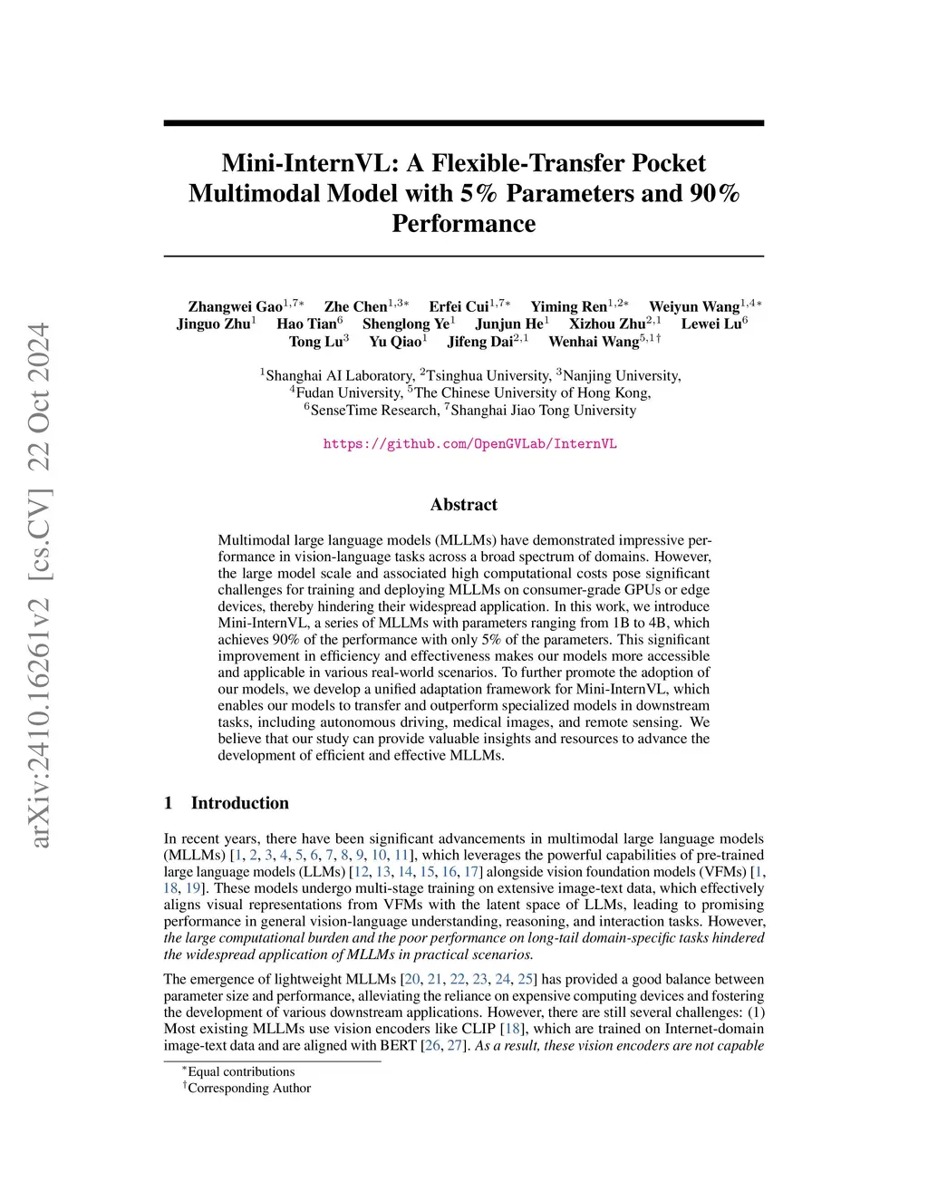 Multimodal large language models (MLLMs) have demonstrated impressive performance in vision-language tasks across a broad spectrum of domains. However, the large model scale and associated high computational costs pose significant challenges for training and deploying MLLMs on consumer-grade GPUs or edge devices, thereby hindering their widespread application. In this work, we introduce Mini-InternVL, a series of MLLMs with parameters ranging from 1B to 4B, which achieves 90% of the performance with only 5% of the parameters. This significant improvement in efficiency and effectiveness makes our models more accessible and applicable in various real-world scenarios. To further promote the adoption of our models, we develop a unified adaptation framework for Mini-InternVL, which enables our models to transfer and outperform specialized models in downstream tasks, including autonomous driving, medical images, and remote sensing. We believe that our study can provide valuable insights and resources to advance the development of efficient and effective MLLMs. Code is available at https://github.com/OpenGVLab/InternVL.