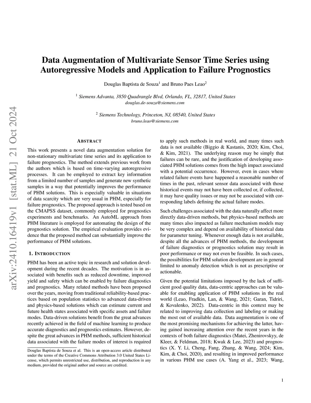 This work presents a novel data augmentation solution for non-stationary multivariate time series and its application to failure prognostics. The method extends previous work from the authors which is based on time-varying autoregressive processes. It can be employed to extract key information from a limited number of samples and generate new synthetic samples in a way that potentially improves the performance of PHM solutions. This is especially valuable in situations of data scarcity which are very usual in PHM, especially for failure prognostics. The proposed approach is tested based on the CMAPSS dataset, commonly employed for prognostics experiments and benchmarks. An AutoML approach from PHM literature is employed for automating the design of the prognostics solution. The empirical evaluation provides evidence that the proposed method can substantially improve the performance of PHM solutions.