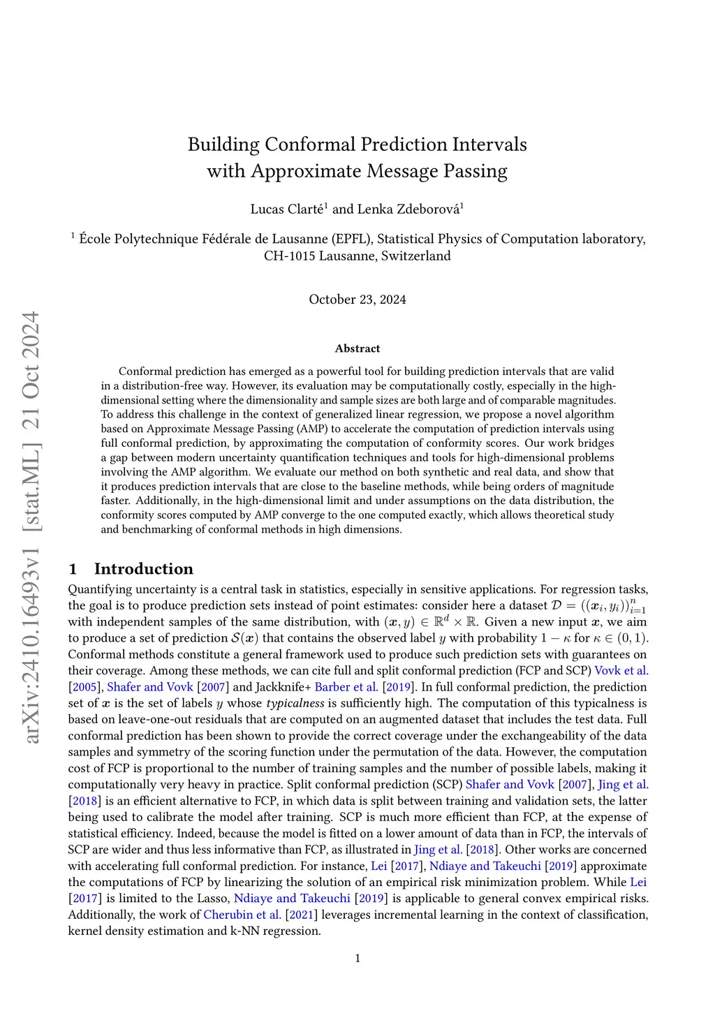 Building Conformal Prediction Intervals with Approximate Message Passing