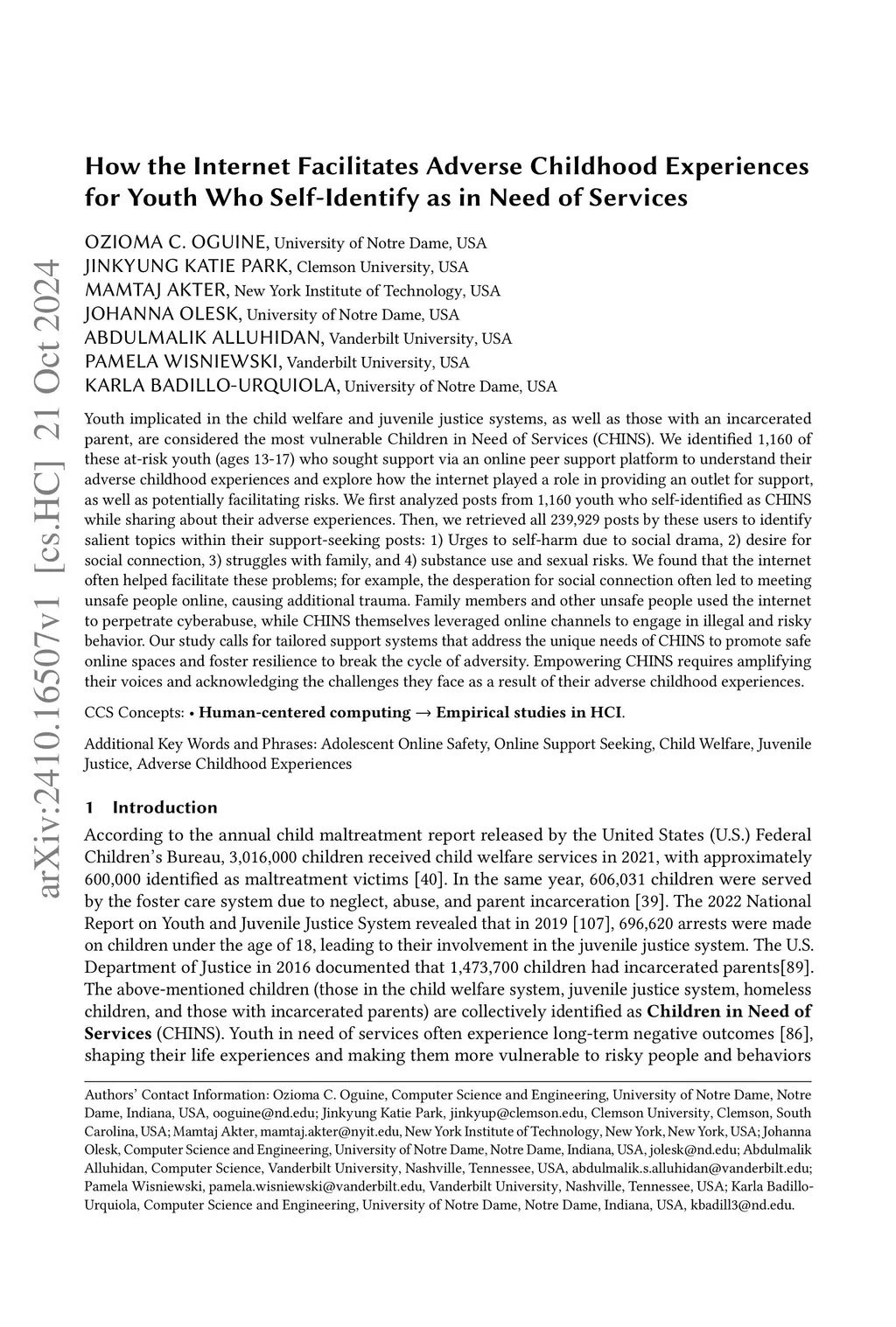 How the Internet Facilitates Adverse Childhood Experiences for Youth Who