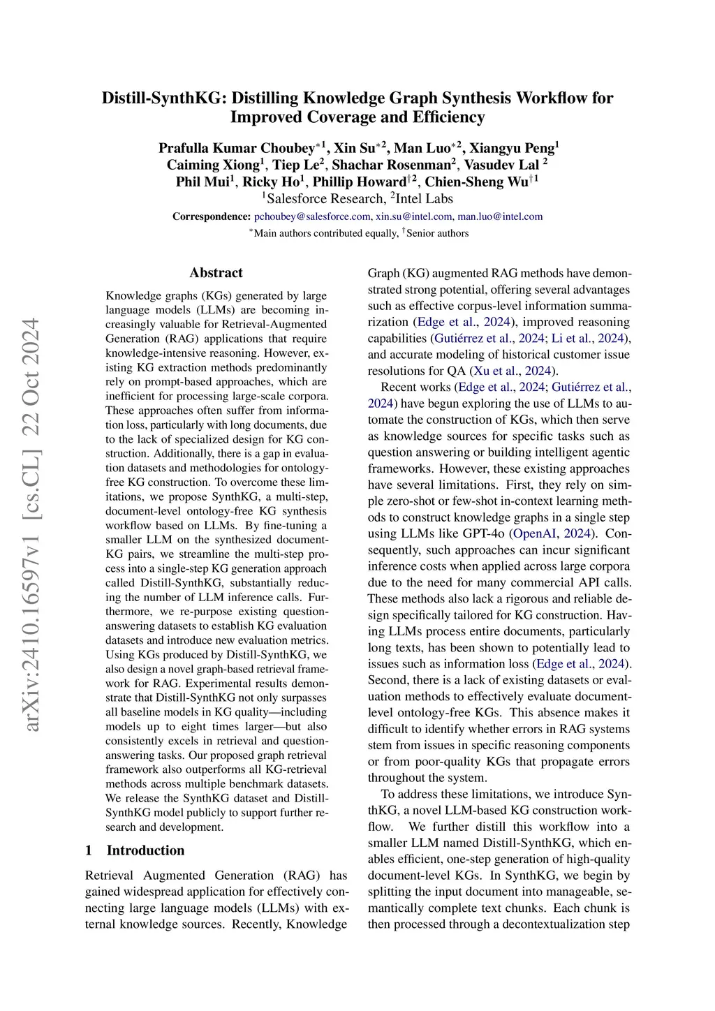 Document-level knowledge graph (KG) construction faces a fundamental scaling challenge: existing methods either rely on expensive large language models (LLMs), making them economically nonviable for large-scale corpora, or employ smaller models that produce incomplete and inconsistent graphs. We find that this limitation stems not from model capabilities but from insufficient training on high-quality document-level KG data. To address this gap, we introduce SynthKG, a multi-step data synthesis pipeline that generates high-quality document-KG pairs through systematic chunking, decontextualization, and structured extraction using LLMs. By fine-tuning a smaller LLM on synthesized document-KG pairs, we streamline the multi-step process into a single-step KG generation approach called Distill-SynthKG. Furthermore, we repurpose existing question-answering datasets to construct KG evaluation datasets and introduce new evaluation metrics. Using KGs produced by Distill-SynthKG, we also design a novel graph-based retrieval framework for RAG. Experimental results demonstrate that Distill-SynthKG not only surpasses all baseline models in KG quality (including models up to eight times larger) but also consistently improves in retrieval and question-answering tasks. Additionally, our proposed graph retrieval framework outperforms all KG-retrieval methods across multiple benchmark datasets.
