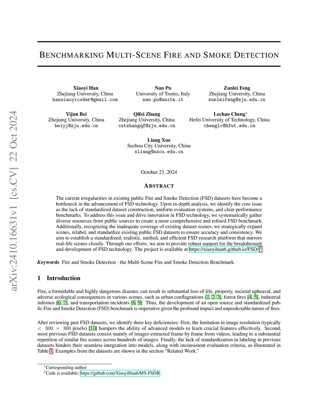 Benchmarking Multi-Scene Fire and Smoke Detection