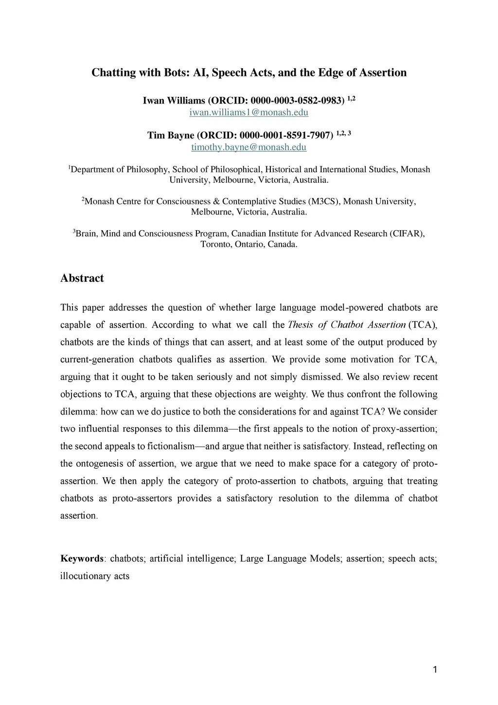 Chatting with Bots: AI, Speech Acts, and the Edge of Assertion