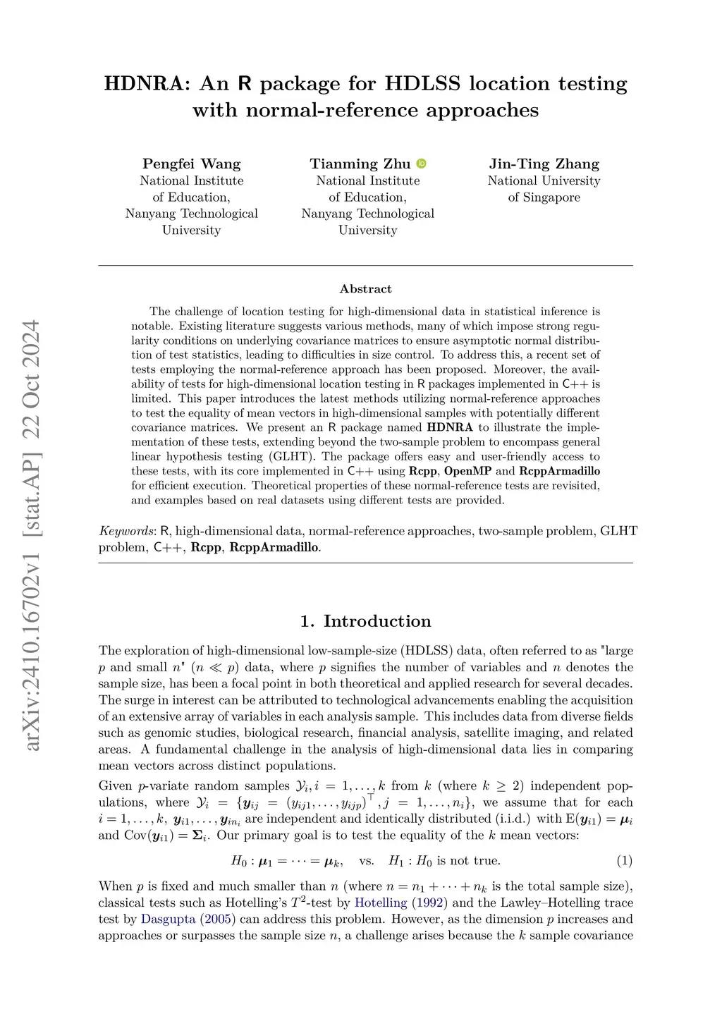 HDNRA: An R package for HDLSS location testing with normal-reference