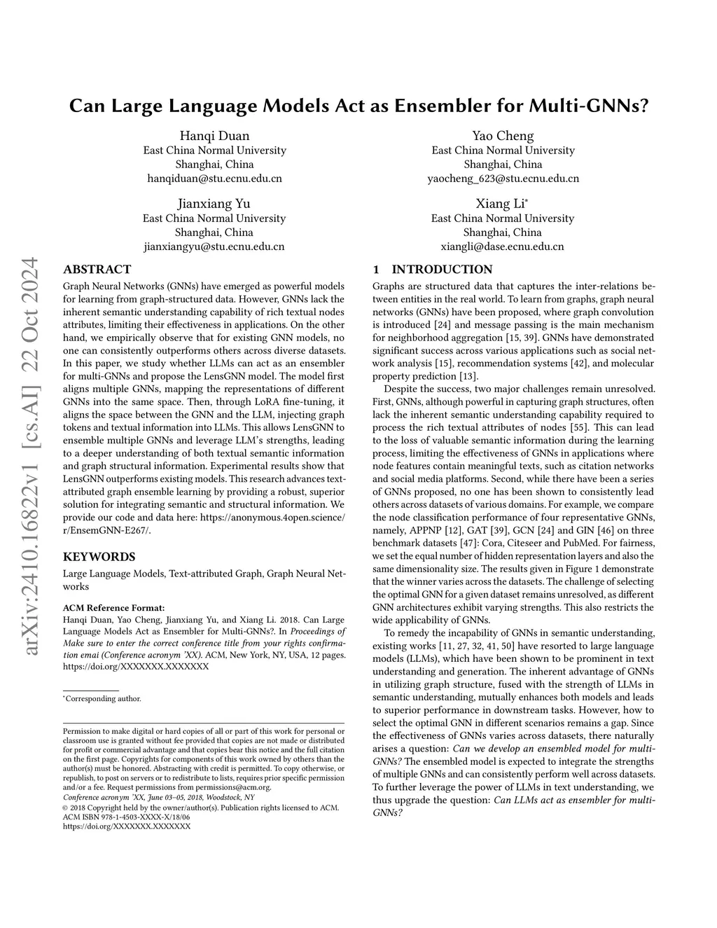 Graph Neural Networks (GNNs) have emerged as powerful models for learning from graph-structured data. However, GNNs lack the inherent semantic understanding capability of rich textual node attributes, limiting their effectiveness in applications. On the other hand, we empirically observe that for existing GNN models, no one can consistently outperforms others across diverse datasets. In this paper, we study whether LLMs can act as an ensembler for multi-GNNs and propose the LensGNN model. The model first aligns multiple GNNs, mapping the representations of different GNNs into the same space. Then, through LoRA fine-tuning, it aligns the space between the GNN and the LLM, injecting graph tokens and textual information into LLMs. This allows LensGNN to ensemble multiple GNNs and take advantage of the strengths of LLM, leading to a deeper understanding of both textual semantic information and graph structural information. The experimental results show that LensGNN outperforms existing models. This research advances text-attributed graph ensemble learning by providing a robust and superior solution for integrating semantic and structural information. We provide our code and data here:this https URL.