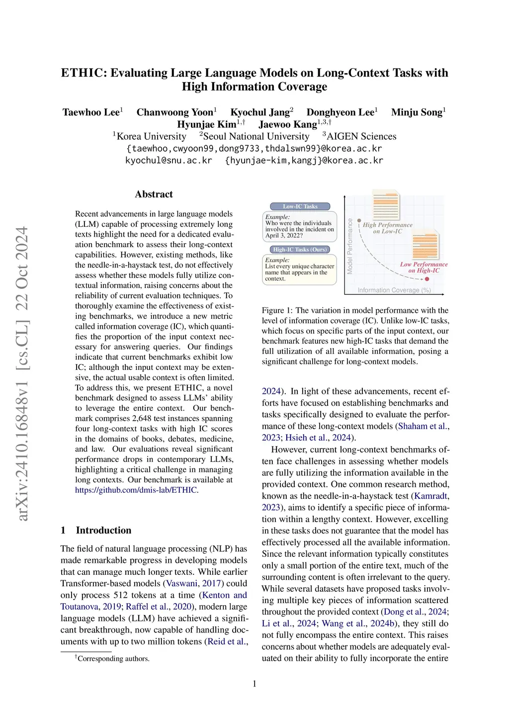 ETHIC: Evaluating Large Language Models on Long-Context Tasks with High Information Coverage