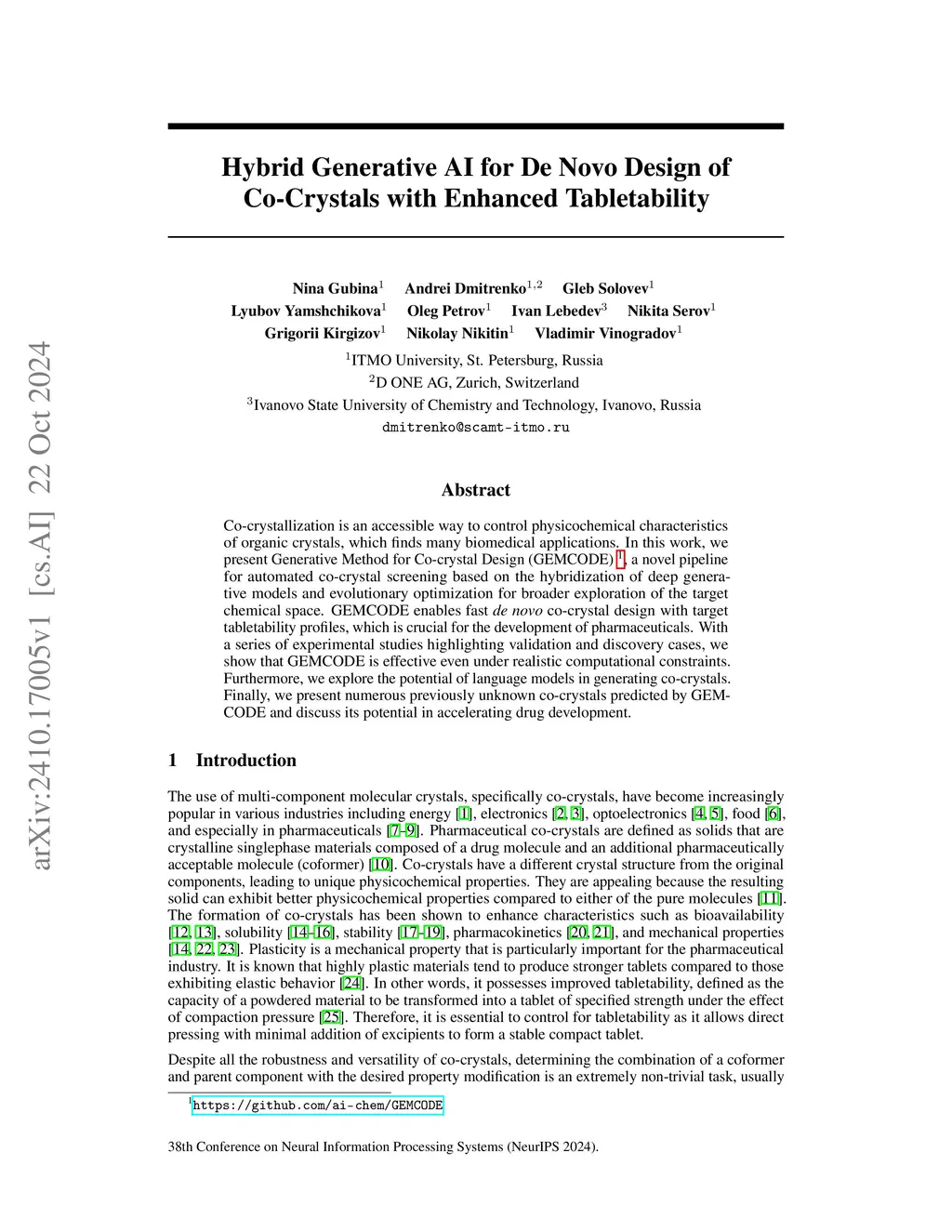 Hybrid Generative AI for De Novo Design of Co-Crystals with Enhanced