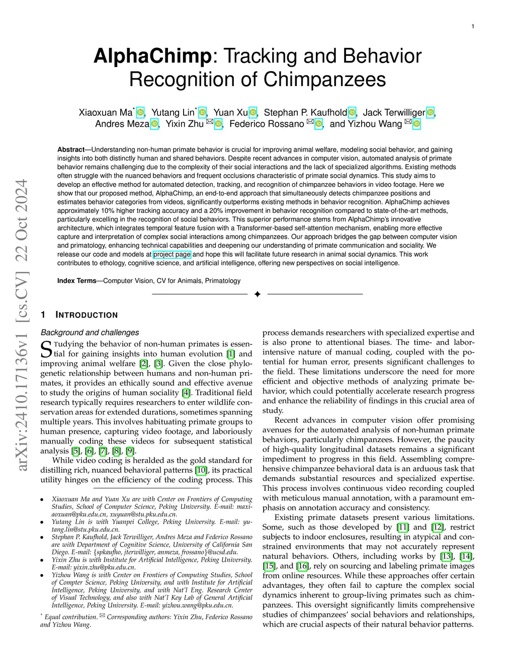 AlphaChimp: Tracking and Behavior Recognition of Chimpanzees