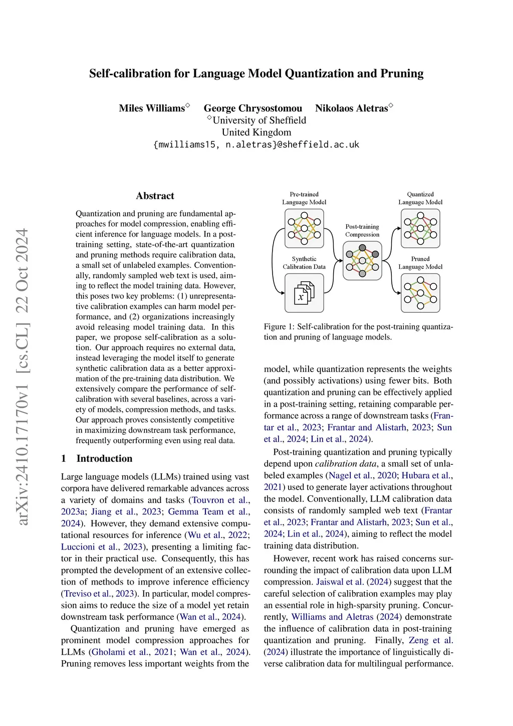 Quantization and pruning are fundamental approaches for model compression, enabling efficient inference for language models. In a post-training setting, state-of-the-art quantization and pruning methods require calibration data, a small set of unlabeled examples. Conventionally, this is randomly sampled web text, aiming to reflect the model training data. However, this poses two key problems: (1) unrepresentative calibration examples can harm model performance, and (2) organizations increasingly avoid releasing model training data. In this paper, we propose self-calibration as a solution. Our approach requires no external data, instead leveraging the model itself to generate synthetic calibration data, with a view to better approximating the pre-training data distribution. We extensively compare the performance of self-calibration with several baselines, across a variety of models, compression methods, and tasks. Our approach proves consistently competitive in maximizing downstream task performance, frequently outperforming even using real data.