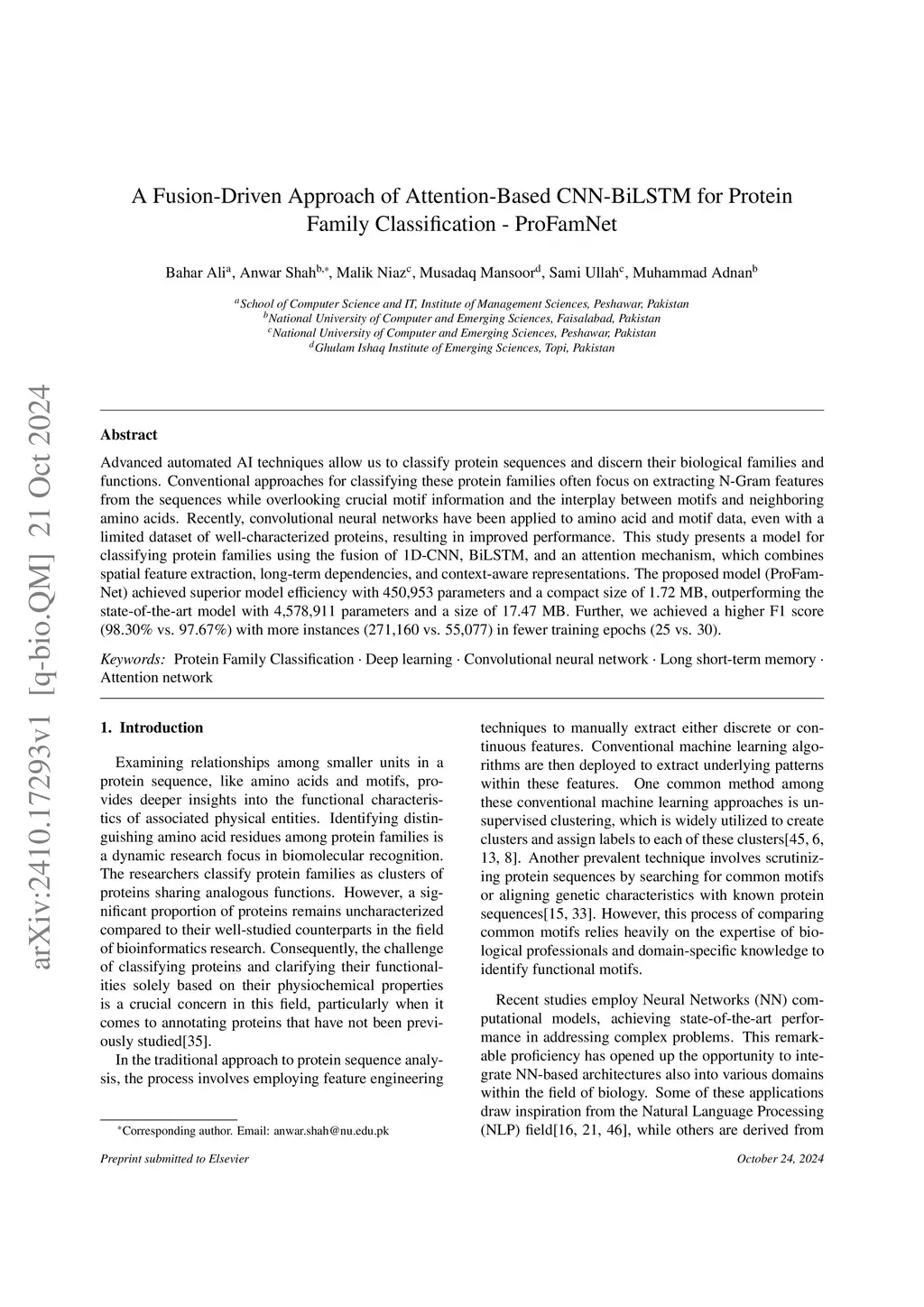 A Fusion-Driven Approach of Attention-Based CNN-BiLSTM for Protein