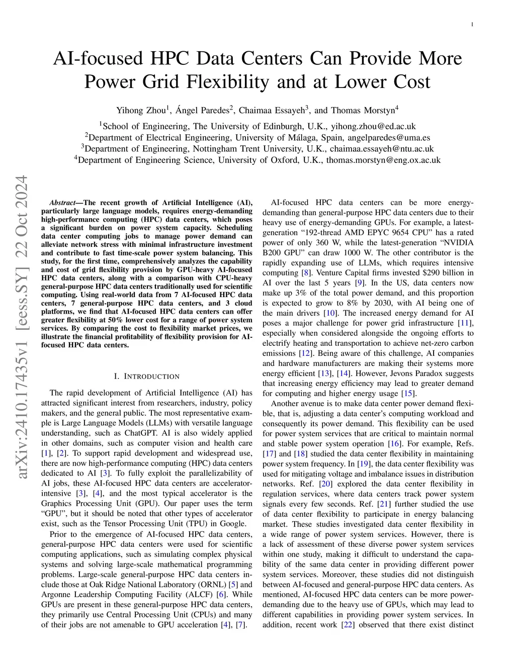 AI-focused HPC Data Centers Can Provide More Power Grid Flexibility and