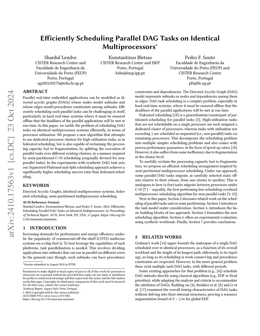 Efficiently Scheduling Parallel DAG Tasks on Identical Multiprocessors