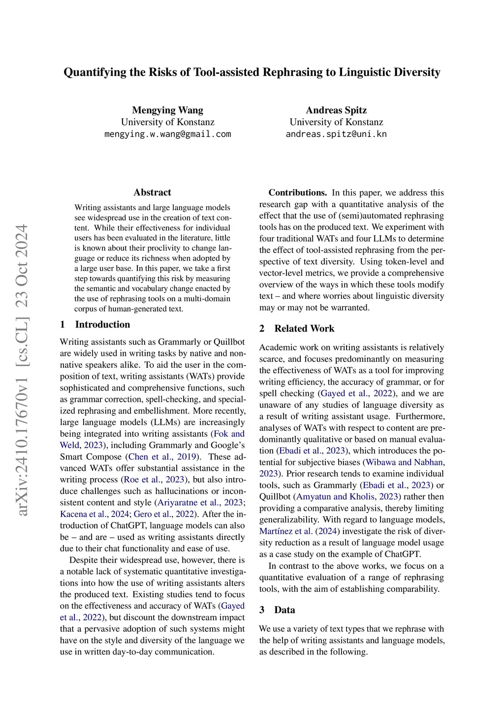 Quantifying the Risks of Tool-assisted Rephrasing to Linguistic