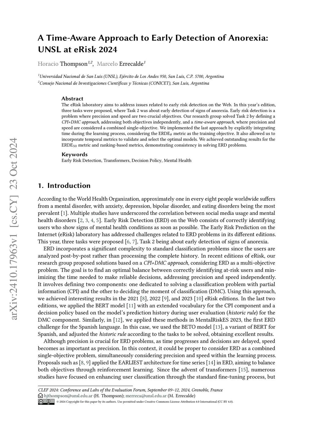 A Time-Aware Approach to Early Detection of Anorexia: UNSL at eRisk 2024