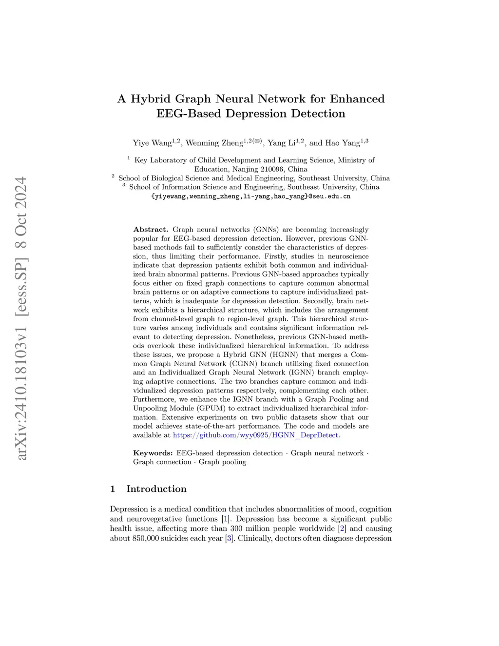 A Hybrid Graph Neural Network for Enhanced EEG-Based Depression